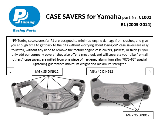 Set protektorů pro Yamaha R1, které chrání motor při pádu a ušetří nemalé prostředky v případě i menší havárie. Ceny originálních dílů jsou vysoké a dojde-li k poškození víka, pod kterým je elektronika, jsou škody na Vašem motocyklu opravdu veliké. Kromě toho se Váš motocykl bude prostě odlišovat díky originálnímu vzhledu.