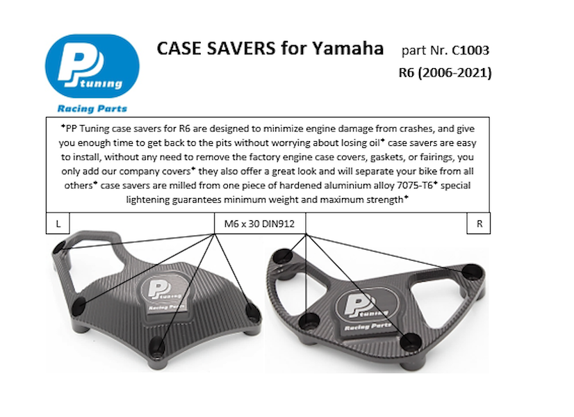 Set protektorů pro Yamaha R6 (2006-2025), které chrání motor při pádu a ušetří nemalé prostředky v případě i menší havárie. Ceny originálních dílů jsou vysoké a dojde-li k poškození víka, pod kterým je elektronika, jsou škody na Vašem motocyklu opravdu veliké. Kromě toho se Váš motocykl bude prostě odlišovat díky originálnímu vzhledu.
