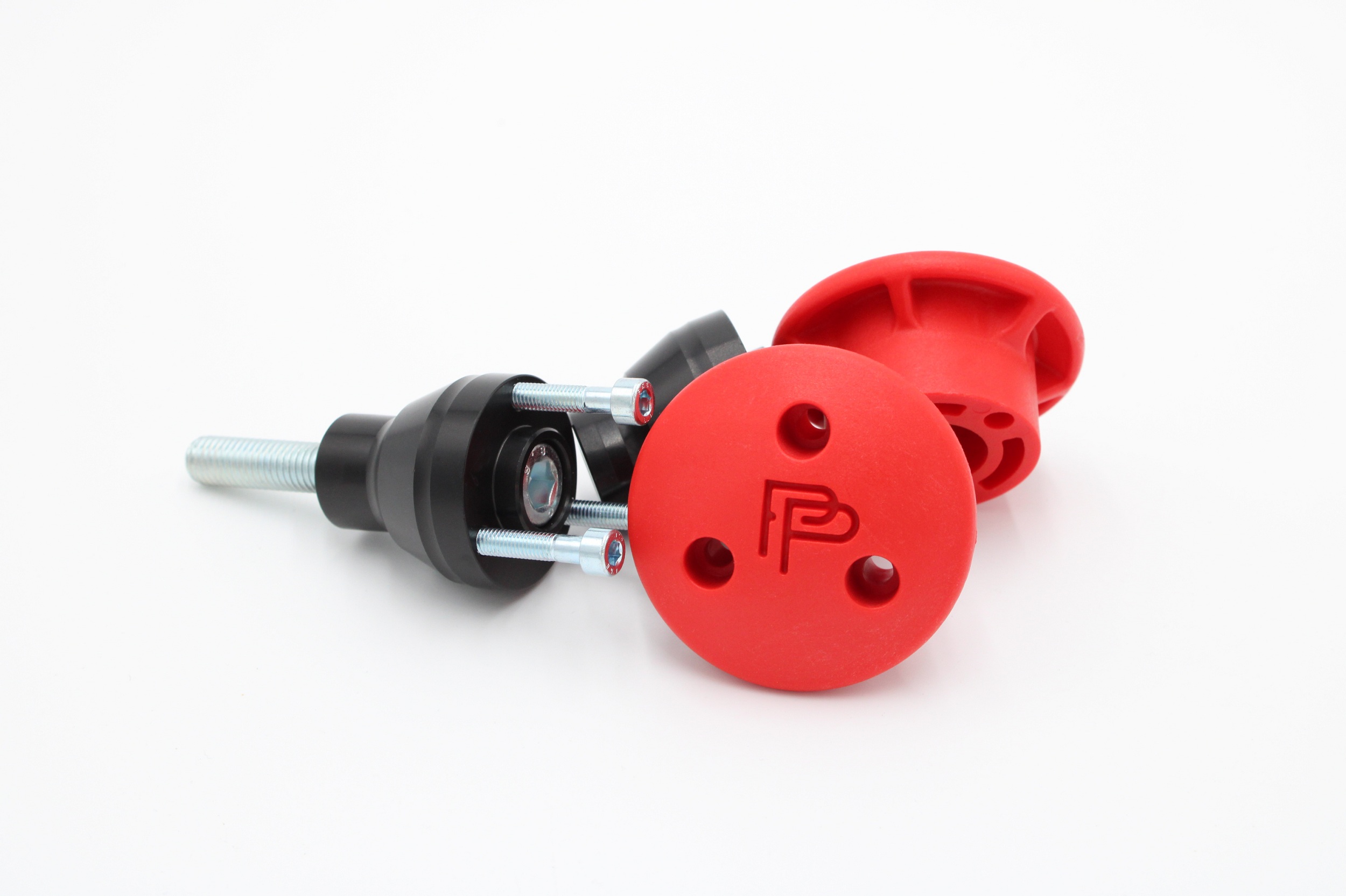 - samotné hříbky jsou vyráběny na CNC vstřikovacích lisech, kde jsou do základního kompozitu přidávána uhlíková a skelní vlákna, která při havárii a následném "klouzání" po povrchu silnice zajišťují postupný úbytek a chrání tak motocykl před totálním poškozením