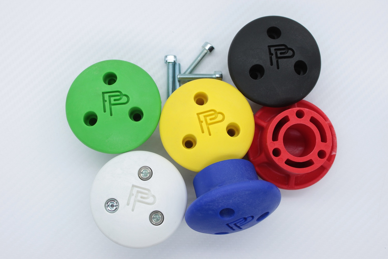- samotné protektory/hříbky jsou vyráběny na CNC vstřikovacích lisech, kde jsou do základního kompozitu přidávána uhlíková a skelná vlákna, která při havárii a následném "klouzání" po povrchu silnice zajišťují postupný úbytek a chrání tak motocykl před totálním poškozením