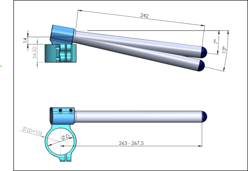 - clip-on řídítka jsou vyrobena z kaleného duralu 7075