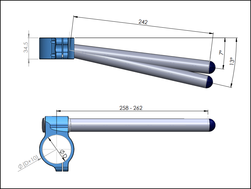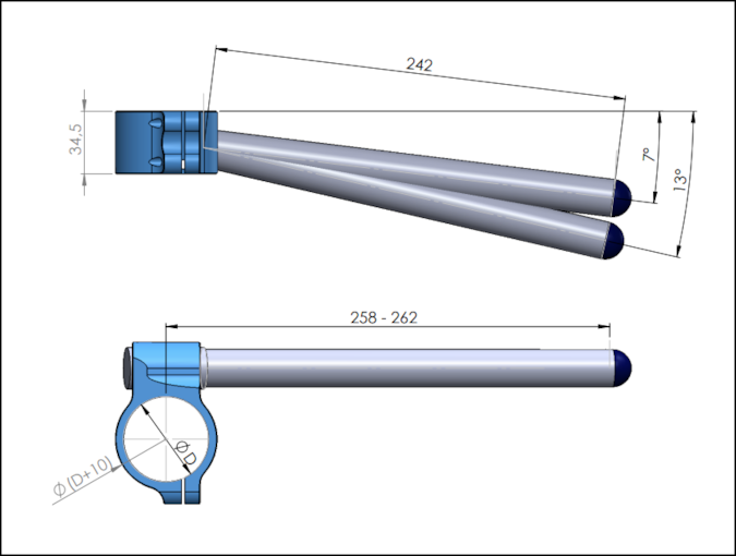 Chtěli bychom upozornit na skutečnost, že nejsme schopni zaručit, že se naše řídítka budou hodit na každý model motocyklu s daným průměrem předních vidlic. Správné umístění řídítek může ovlivnit například: tloušťka horních brýlí, tvar kapotáže okolo řidítek...apod. Vzhledem ke skutečnosti, že se jedná o universální řidítka, která mohou být použity na mnoha modelech motocyklů, v trubkách nejsou předem vyvrtané otvory např.pro zafixování elektroovladačů nebo držáku brzdové nádobky. Tyto vodící otvory je nutné dodělat podle konkrétní potřeby. Možná budete muset přemístit nebo upravit některé části tak, aby řídítka plnila svoji funkci.