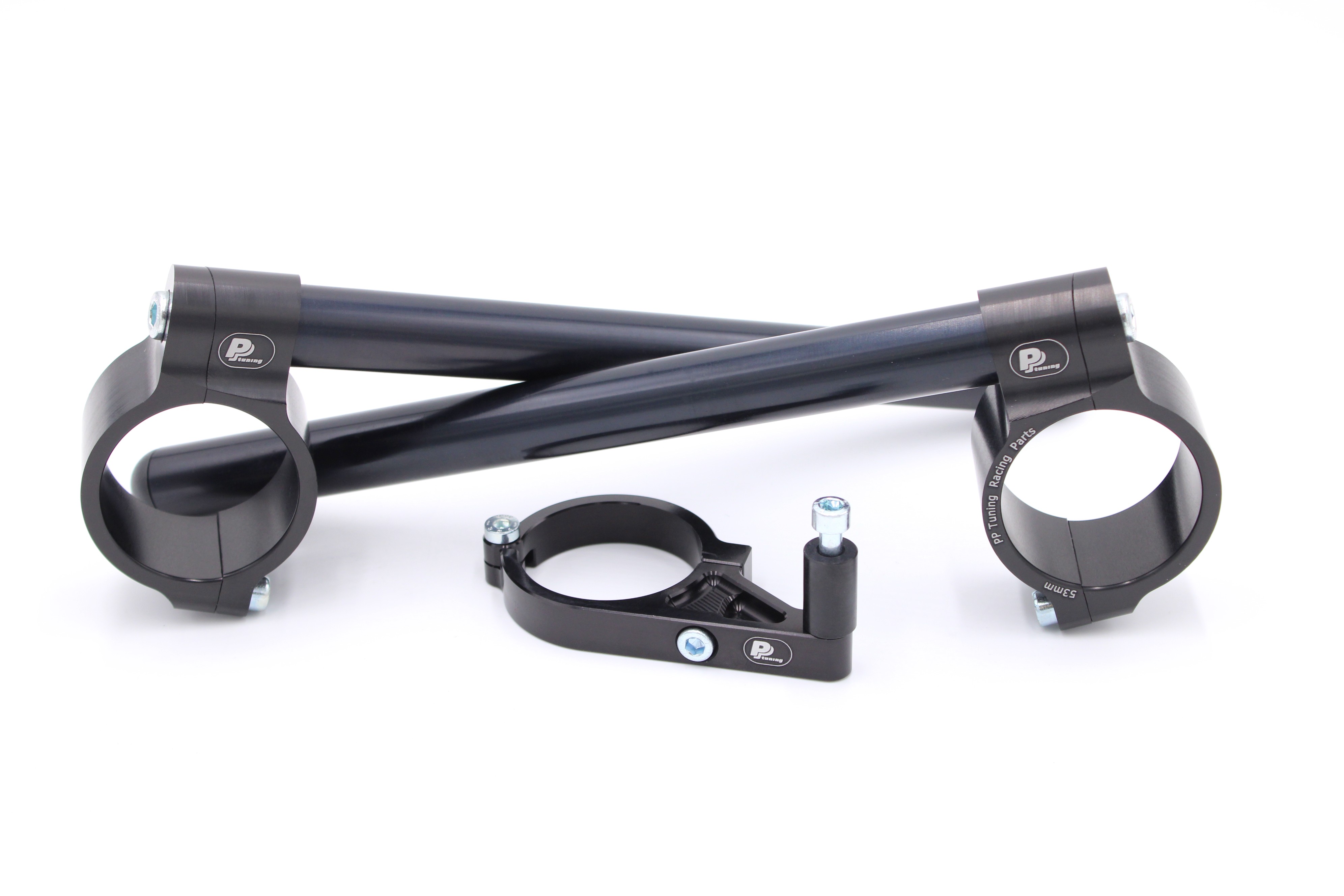 - clip-on řídítka jsou vyrobena z kaleného duralu na CNC strojích