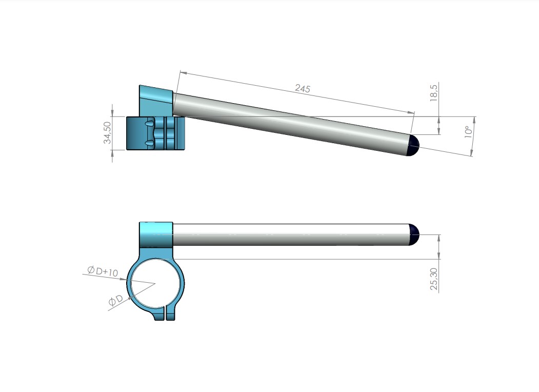 - clip-on řídítka jsou vyrobena z kaleného duralu na CNC strojích