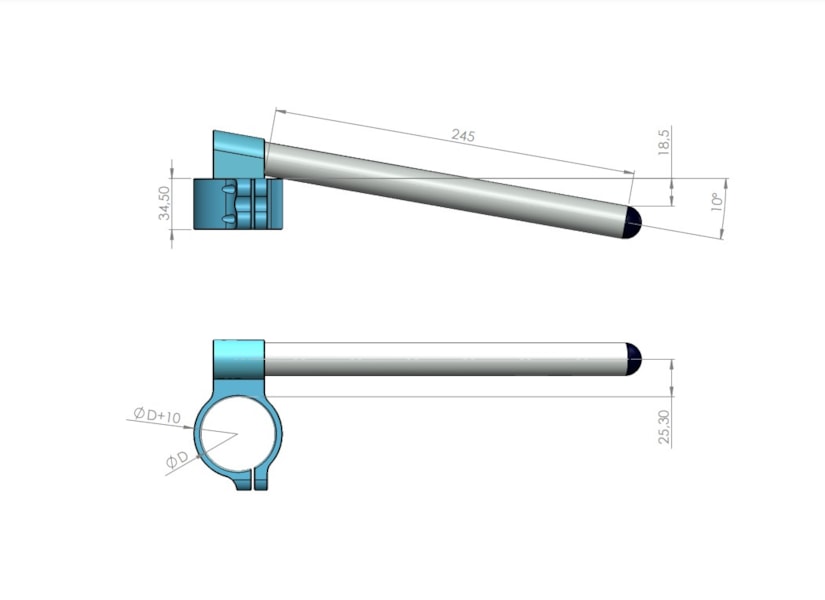 - clip-on řídítka jsou vyrobena z kaleného duralu na CNC strojích