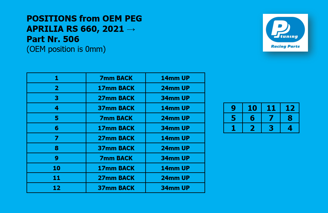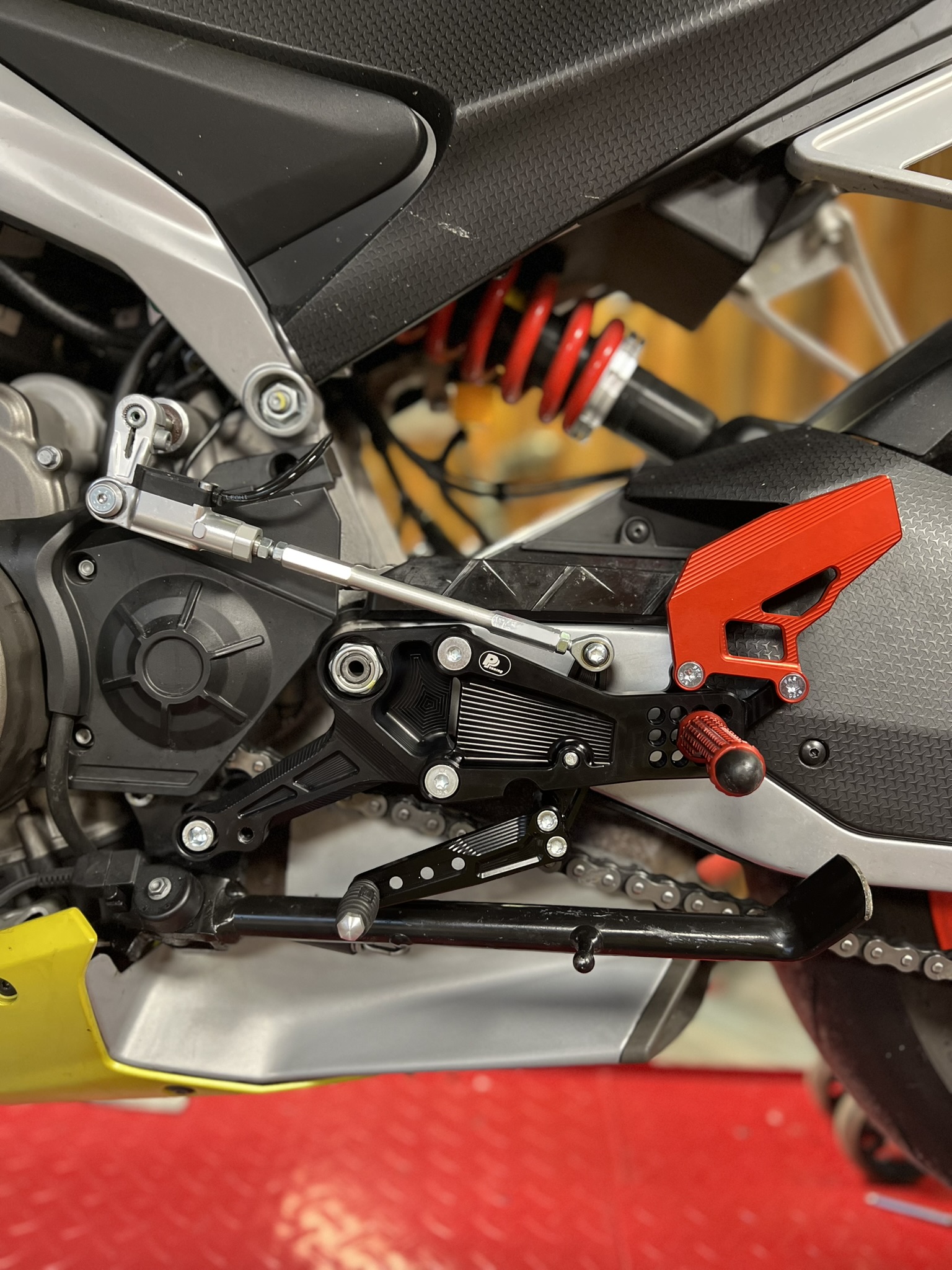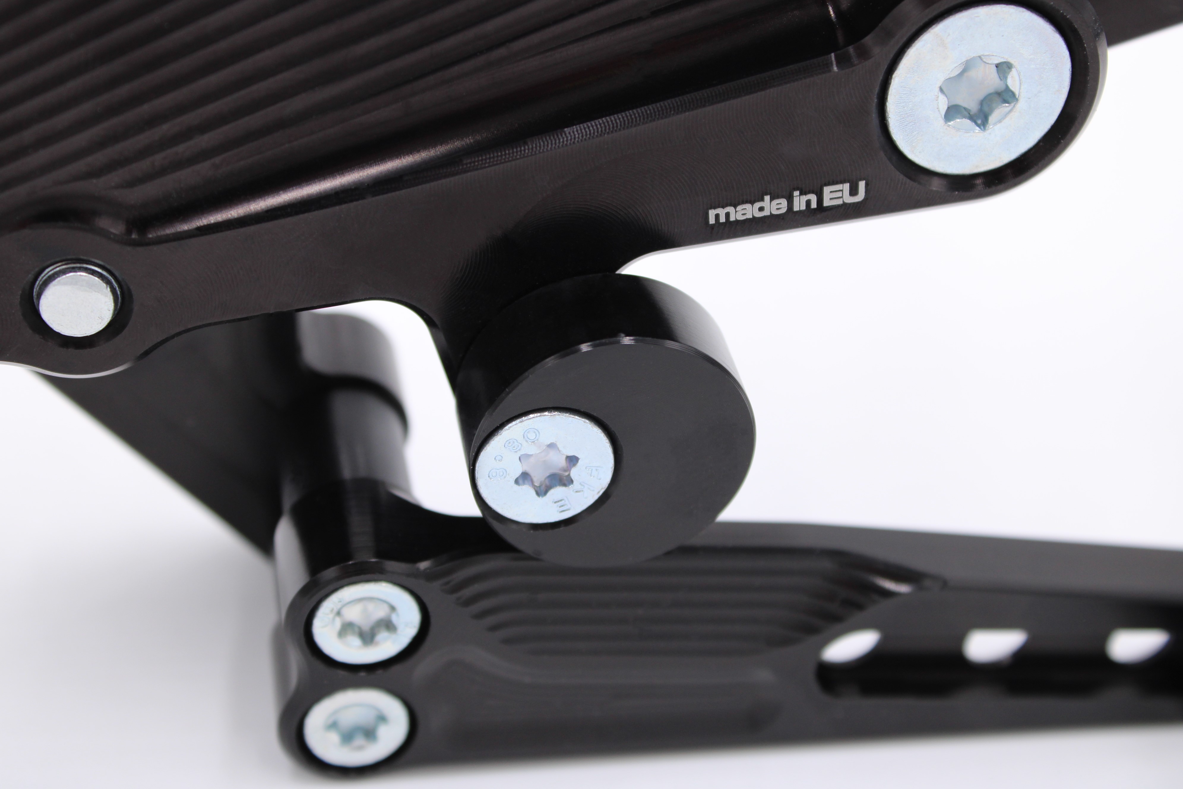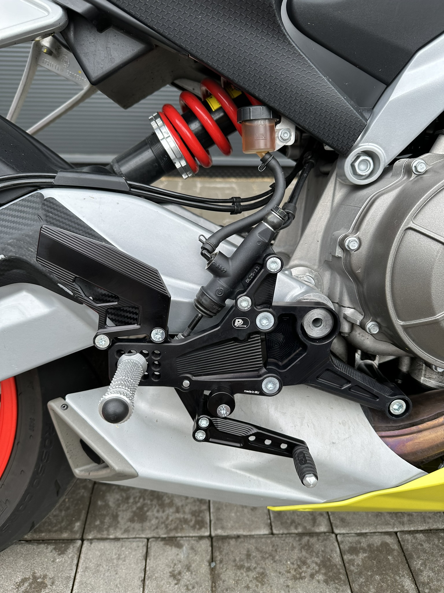 RACE CONCEPT stupačkový set pro Aprilia RS 660 a Tuono 660 (2021–) je navržen pro jezdce, kteří chtějí z lehké dvouválcové platformy vytěžit maximální kontrolu a přesnost. Konstrukce zvyšuje stabilitu v náklonu, zlepšuje oporu při brzdění a umožňuje aktivnější práci těla při sportovní jízdě.