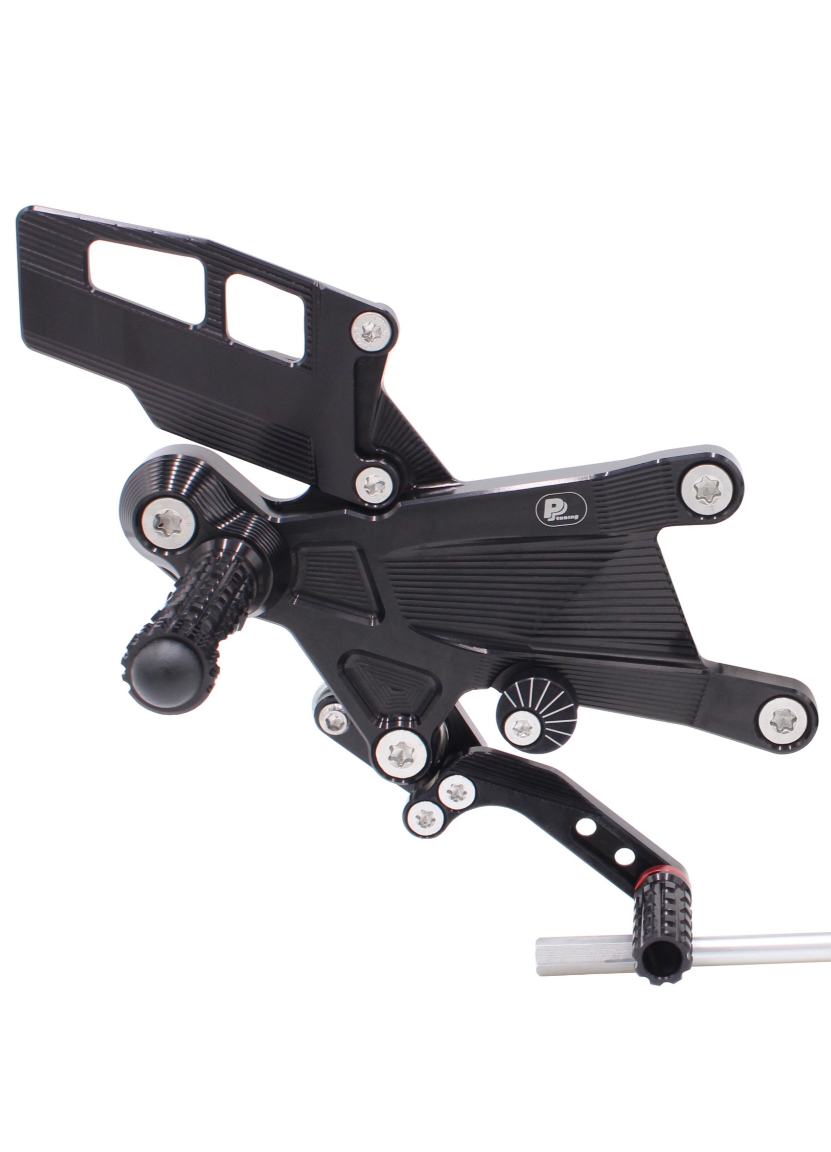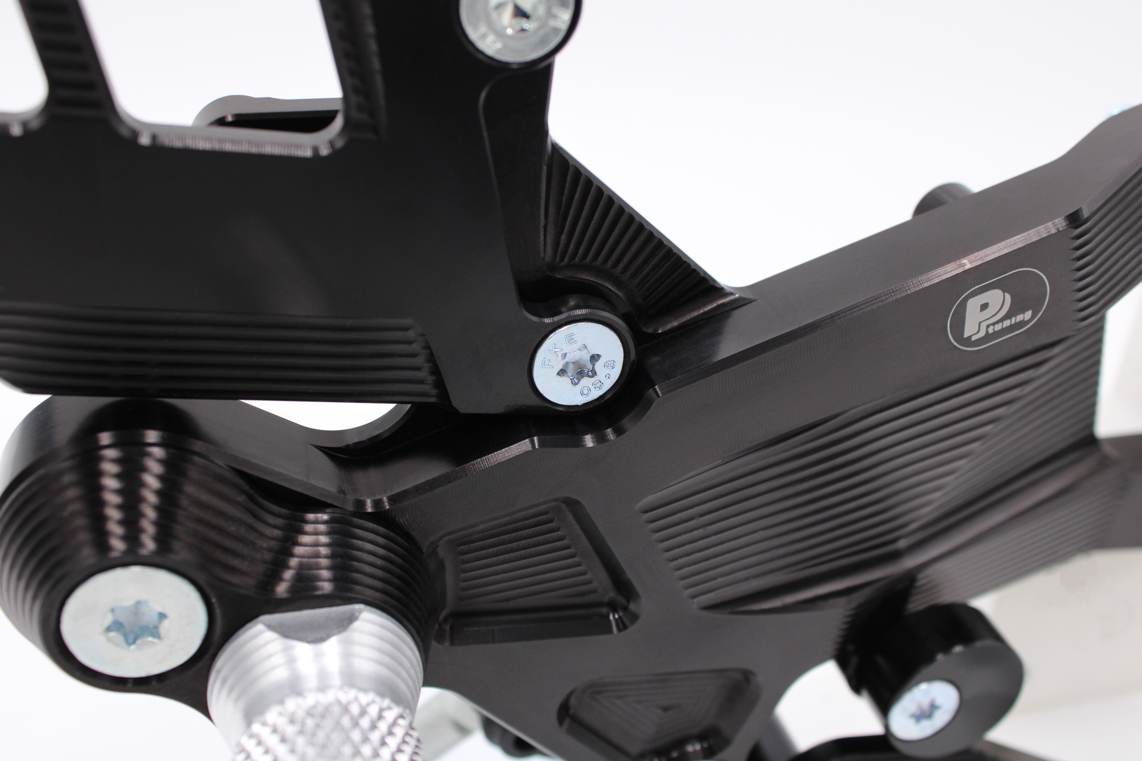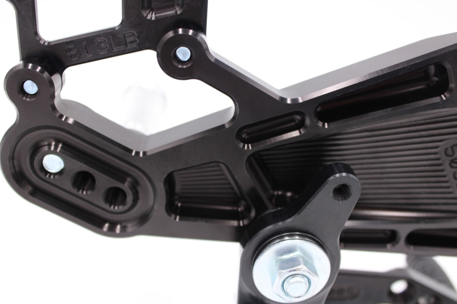 Set podporuje standardní i reverse (GP) shifting a je plně kompatibilní s brzdovým světlem. Celá sestava je CNC obráběná z vysoce pevného hliníku 7075-T6, s tvrdým eloxem, precizním závodním zpracováním a speciálním odlehčením optimalizovaným pomocí ANSYS. Frézované kapsy na zadní straně ramene snižují hmotnost a současně výrazně zvyšují pevnost celé sestavy. Stupačky se speciálním profilem testovaným ve vytrvalostních závodech EWC / 24h Le Mans zajišťují extrémní grip i za mokra. PURE CONCEPT tak pro Panigale V4 rodinu představuje technicky propracované řešení pro jezdce, kteří chtějí ergonomii bez kompromisů a špičkové dílenské zpracování.
