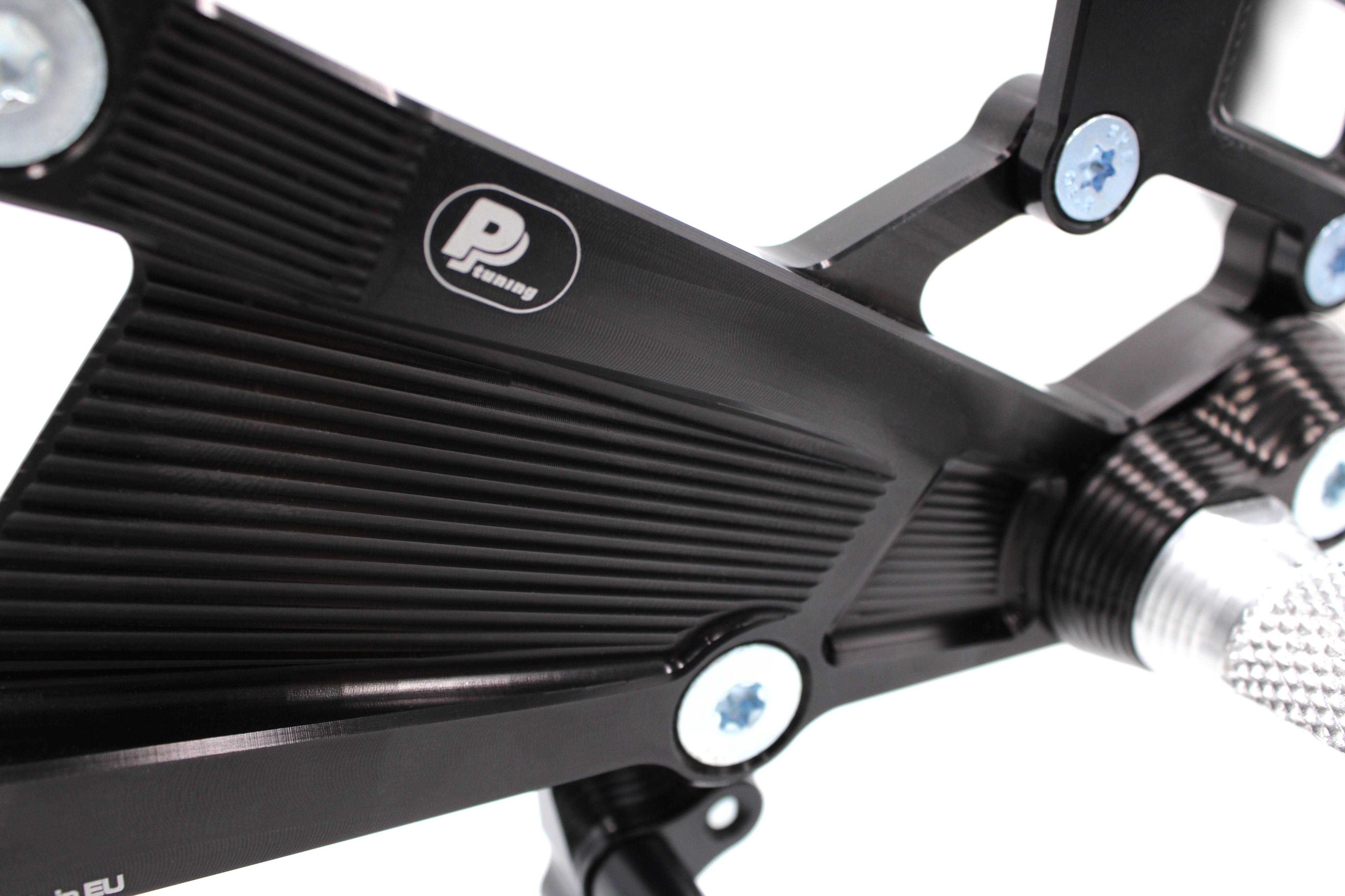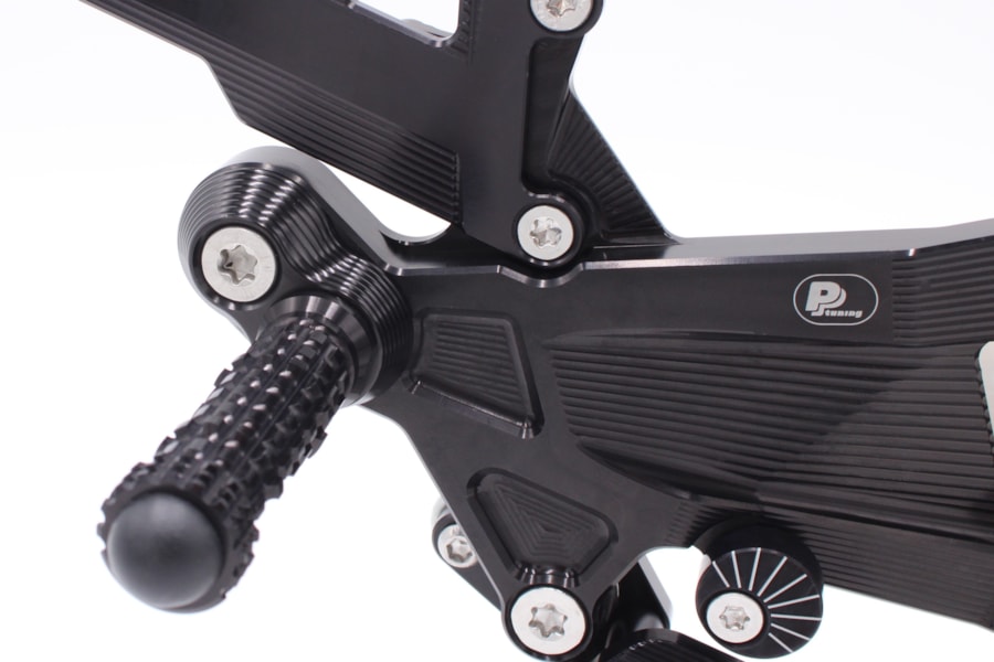 Sériové OEM stupačky proti tomu nabízejí jen omezený prostor pro skutečné doladění posedu. PURE CONCEPT to řeší systémem 3 kružnic s celkem 34 polohami nastavení, díky kterému si jezdec najde svou ideální pozici bez ohledu na výšku postavy nebo velikost boty. Oproti sériové poloze lze stupačky nastavit až o 42 mm dozadu a 40 mm nahoru, nebo až o 22 mm dopředu a 11 mm dolů. Právě možnost posunout stupačky také dopředu a dolů je v praxi mimořádně cenná pro vysoké jezdce i pro ty, kterým běžná sportovní aftermarket řešení nesedí dost přirozeně.
