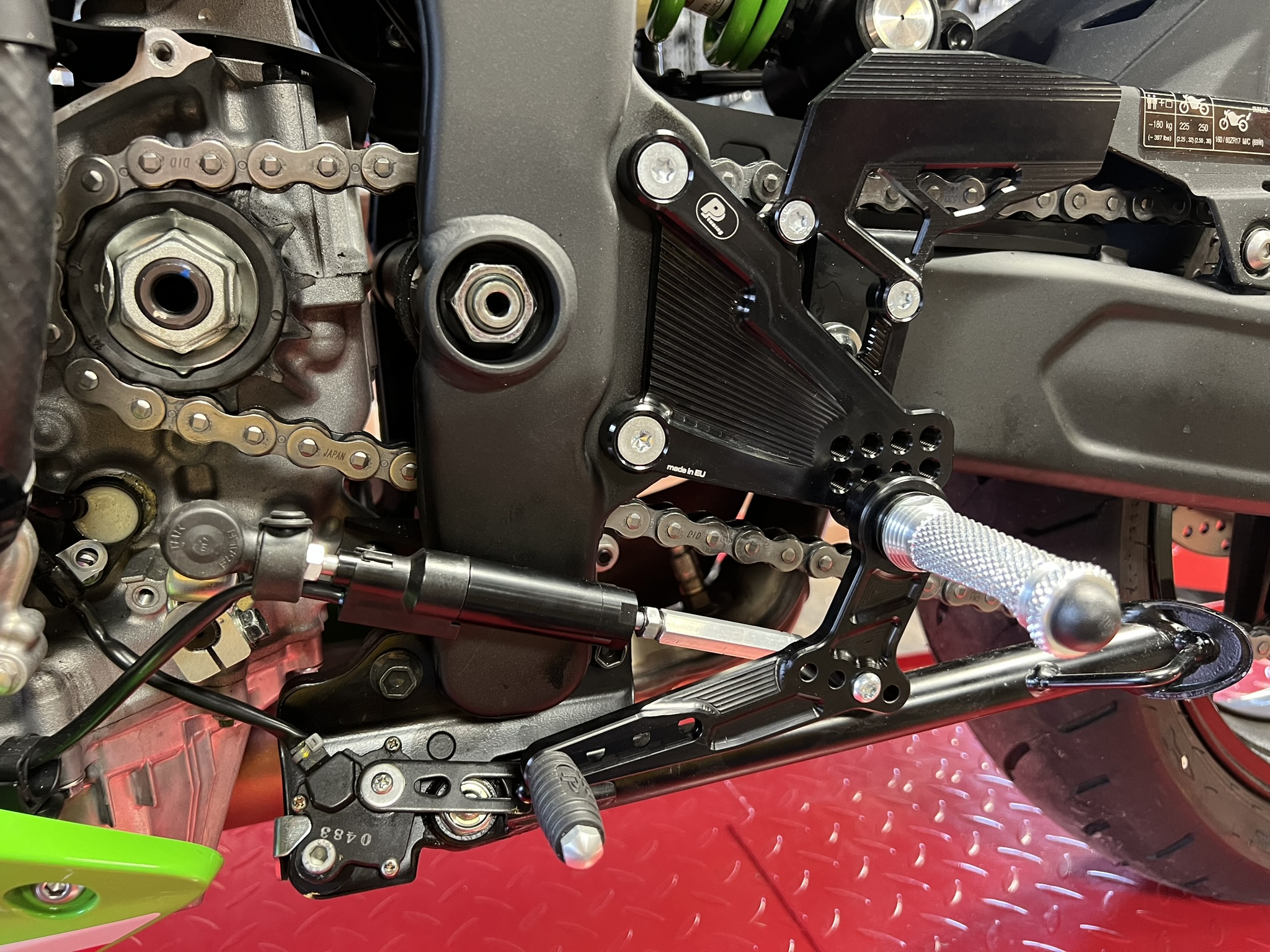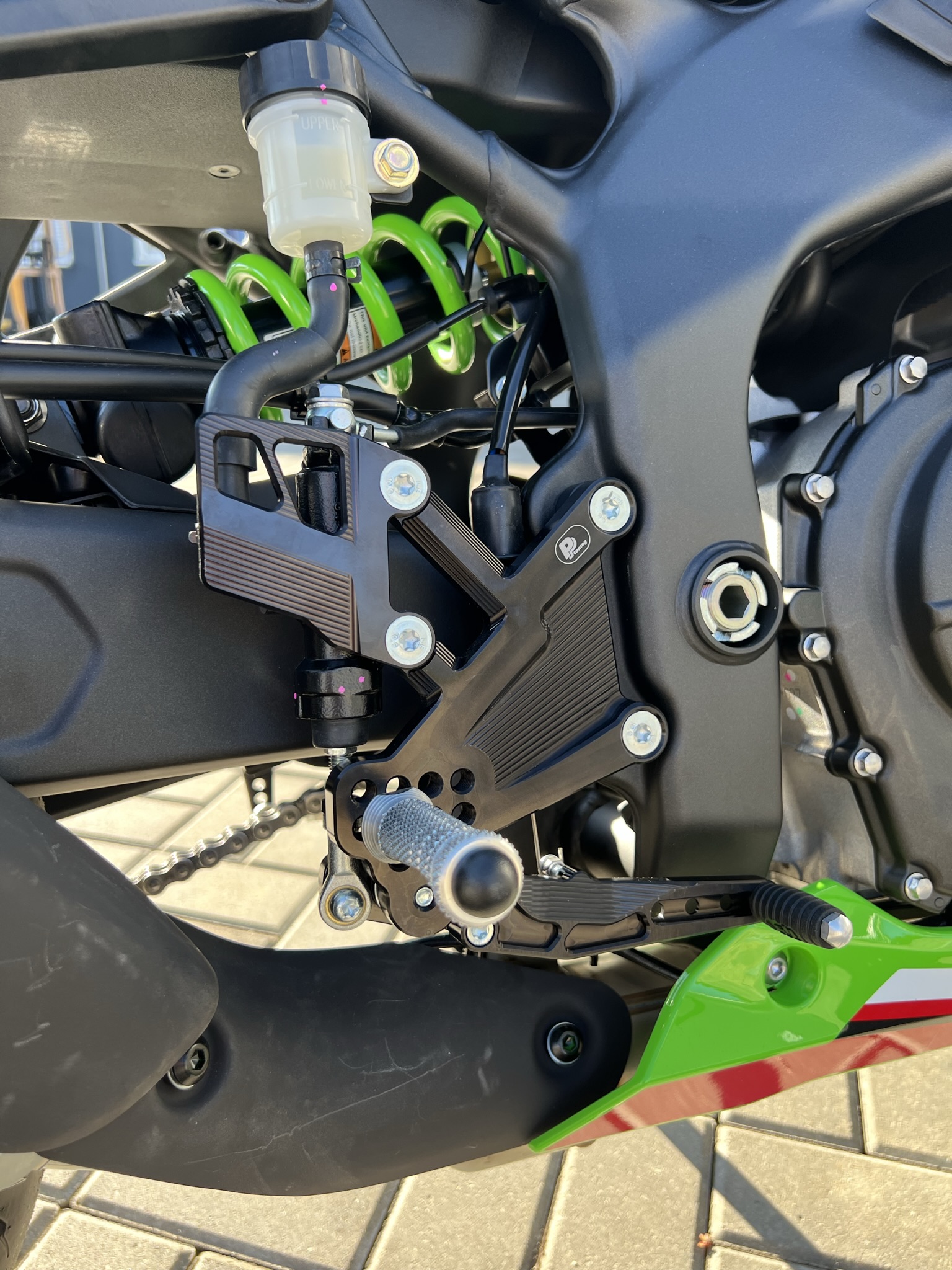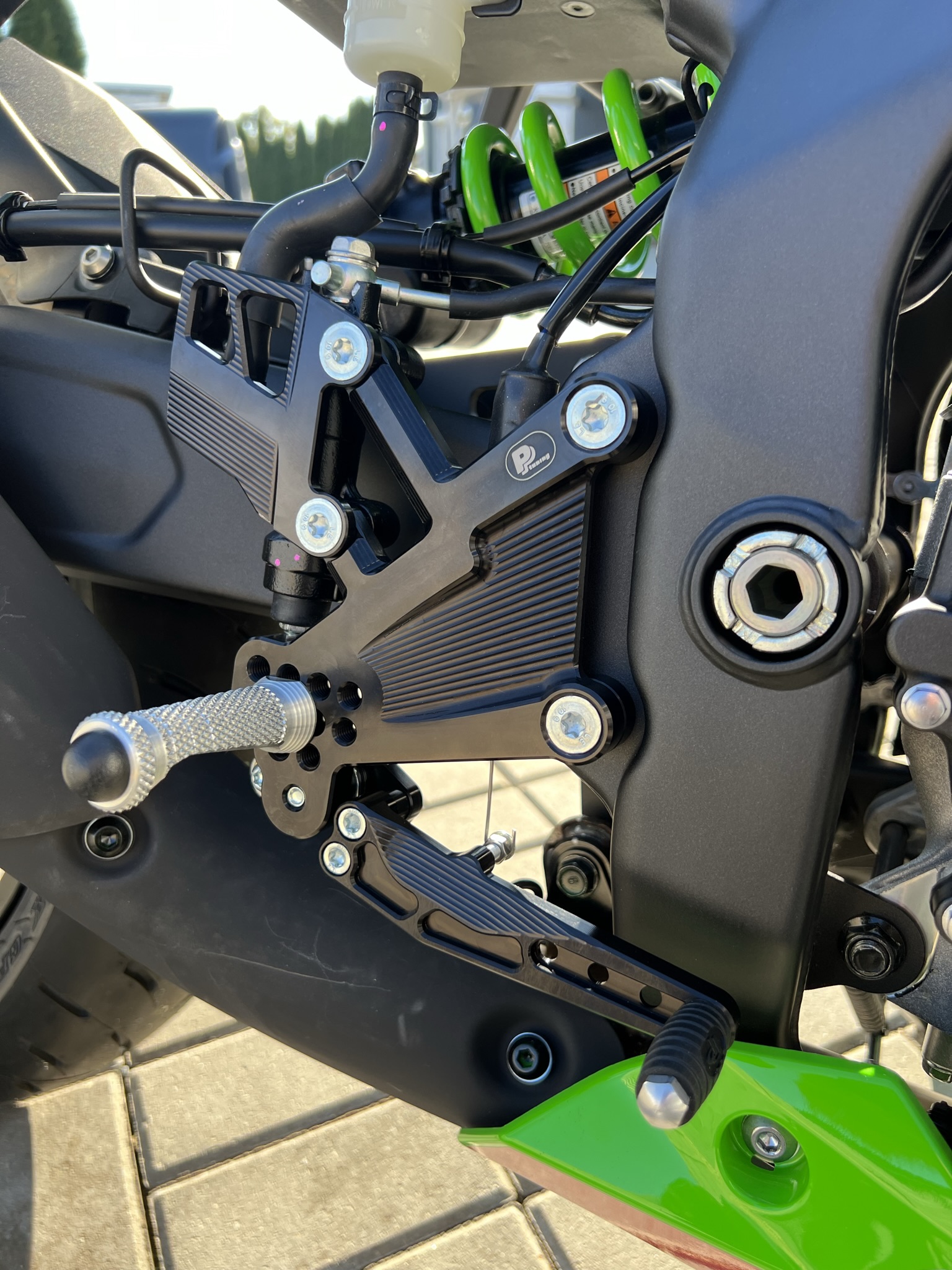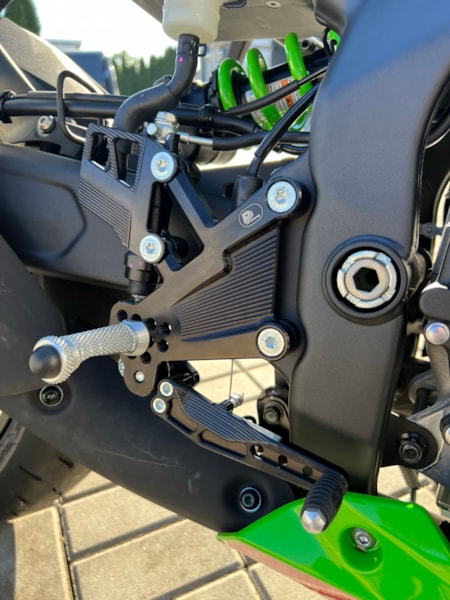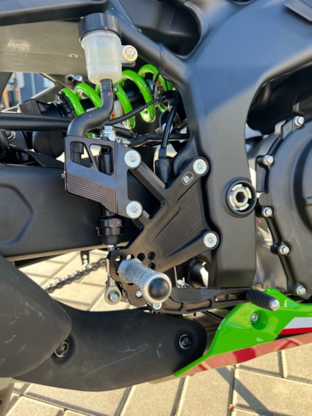 - plně nastavitelné stupačky na motorku Kawasaki ZX-4RR (2023-2025) s reversním řazením, RACE CONCEPT