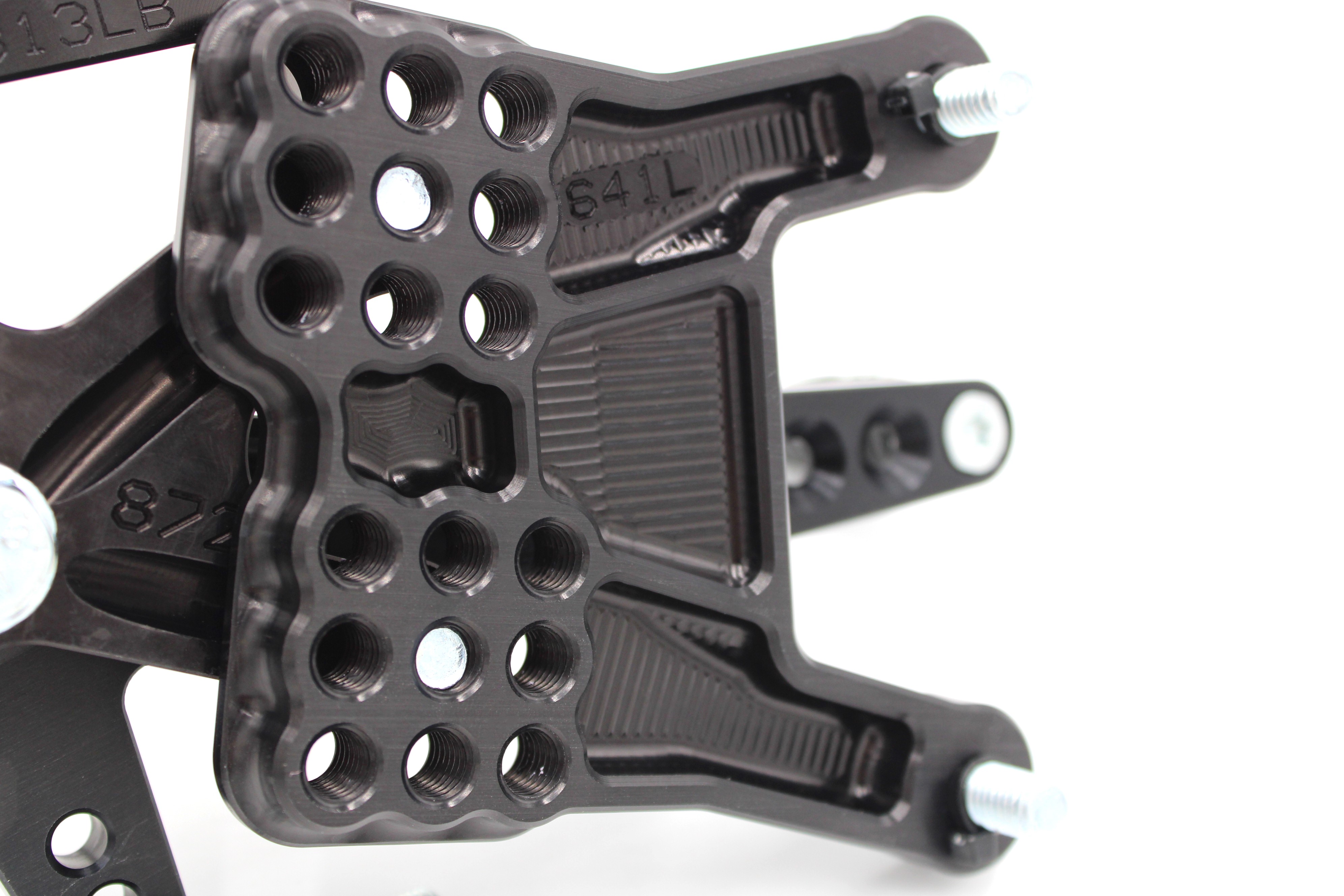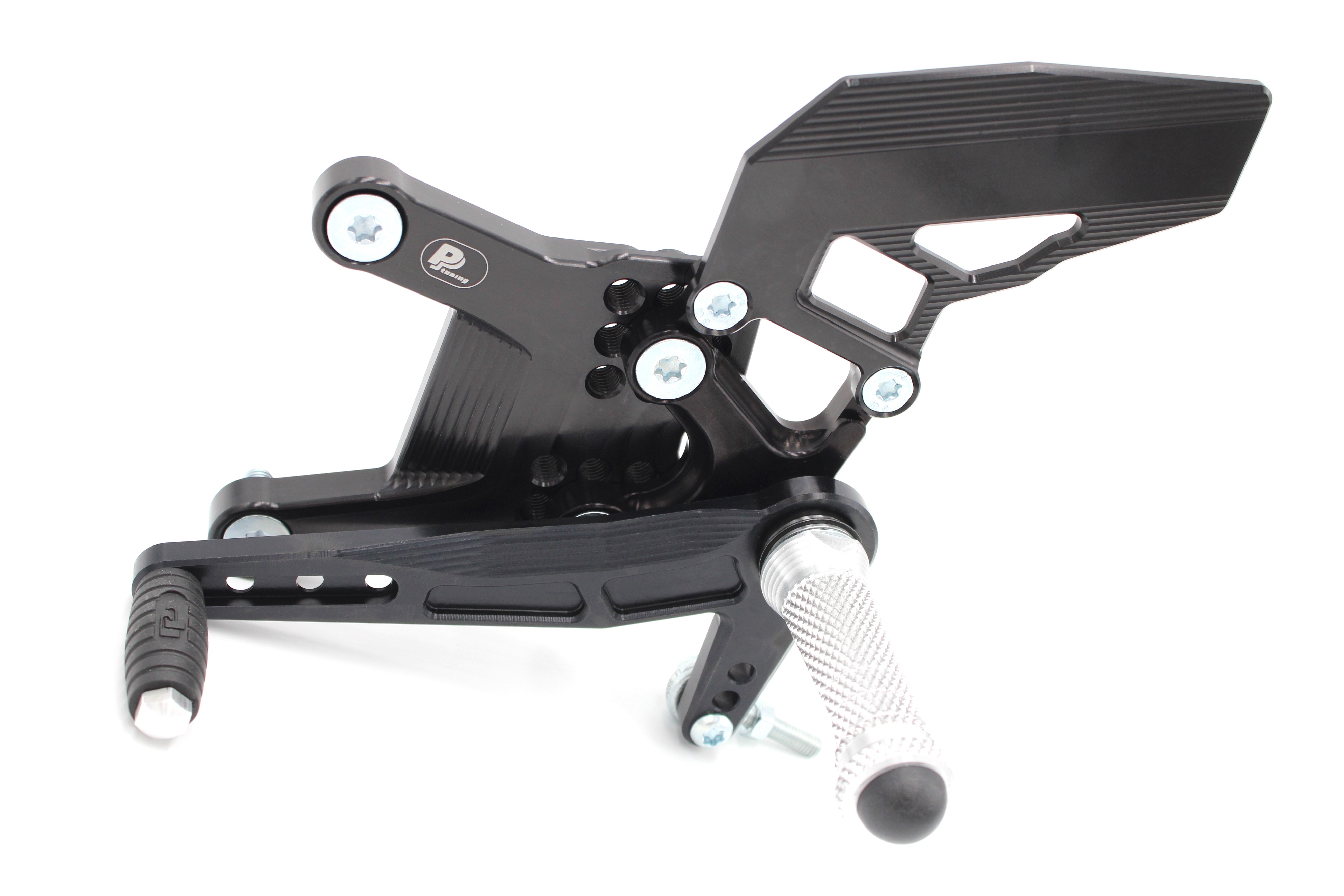 Set je určen pro standardní (OEM) řazení a zachovává logiku sériového ovládání motocyklu. Oproti originálním stupačkám přináší sportovnější ergonomii, lepší odezvu pák a možnost jemného doladění polohy nohou bez negativního vlivu na tuhost celé sestavy.