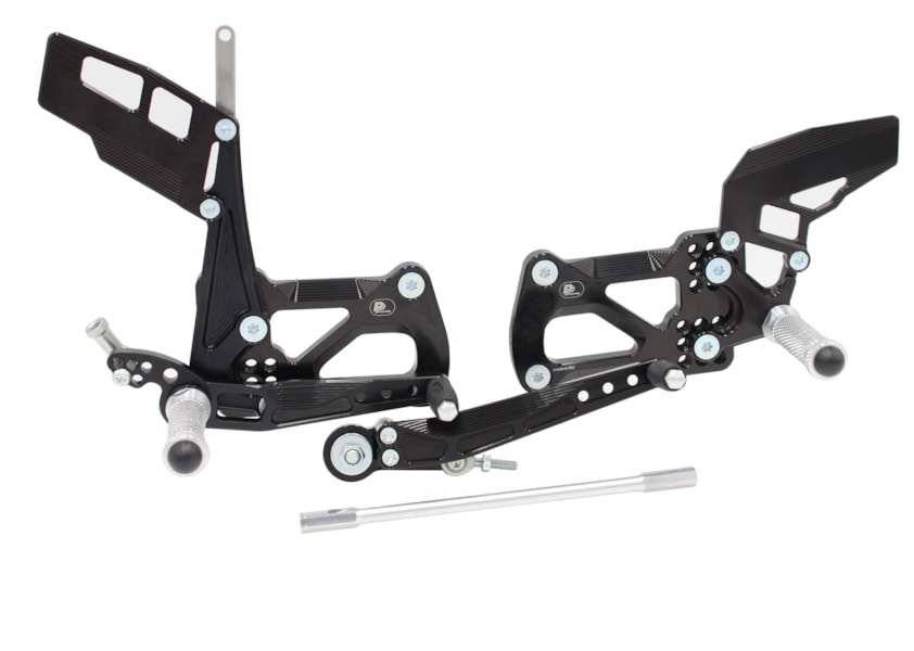 Set umožňuje použití se sériovým (OEM) i s reversním (GP / závodním) řazením, což dává možnost přizpůsobit konfiguraci podle stylu jízdy nebo charakteru tratě. Oproti originálním stupačkám nabízí širší rozsah nastavení polohy nohou a přímější ovládání bez kompromisů v pevnosti celé sestavy.