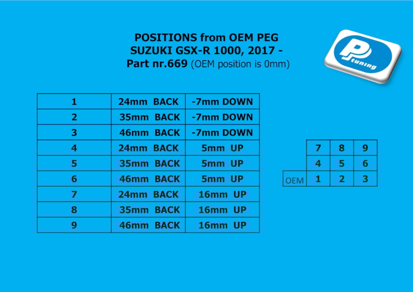 • 9 možností polohování od -7 do +46mm nahoru a vzad (viz. plánek posunutí)