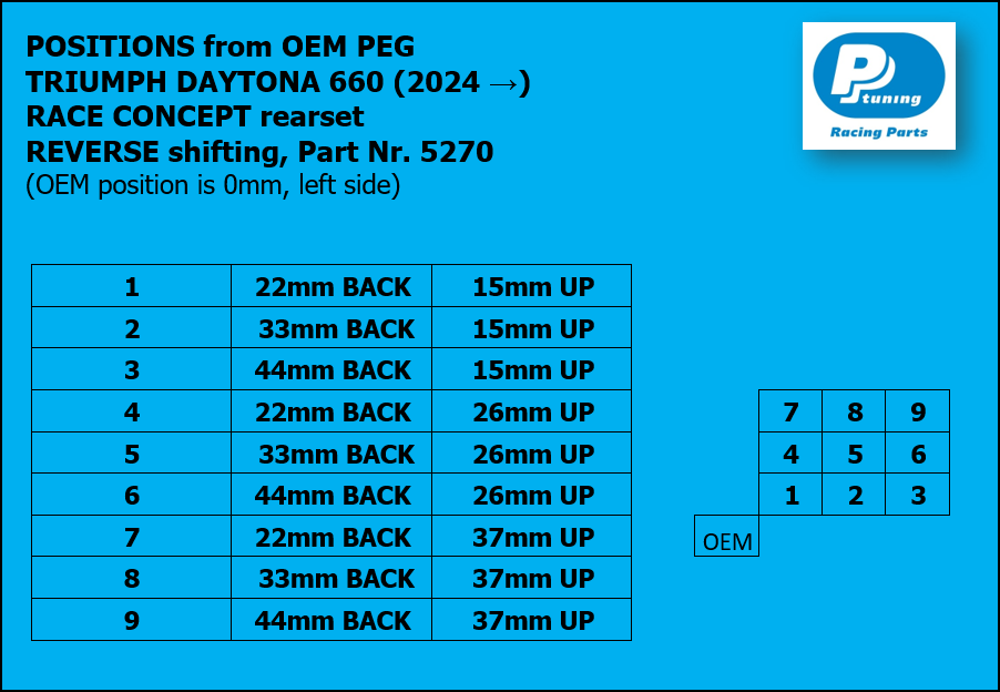 - nastavitelné stupačky na motorku Triumph Daytona 660 (2024-2025)