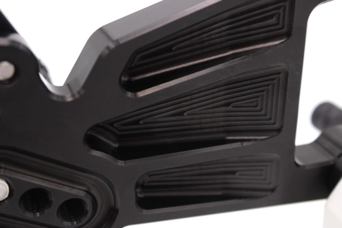 - speciální odlehčení - díky špičkovému softwaru ANSYS, který používáme na simulace mezního zatížení je také na zadní straně ramene několik frézovaných kapes, které zmenšily hmotnost a výrazně zvýšily pevnost celé sestavy
