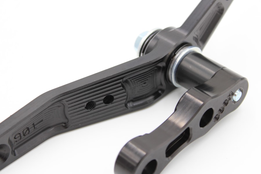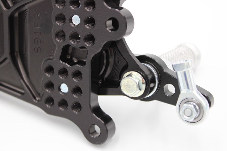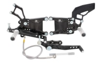 - 6910 - set pro standardní i reversní řazení, řadící páka se montuje místo bočního stojanu, který je nutné demontovat. Místo něho se montuje speciální mezikus, který je součástí setu a na něj se montuje řadící páka. Samotný stojánek váží 750gr.!, což není zanedbatelná váha při závodech a jeho demontáž rozhodně doporučujeme!
