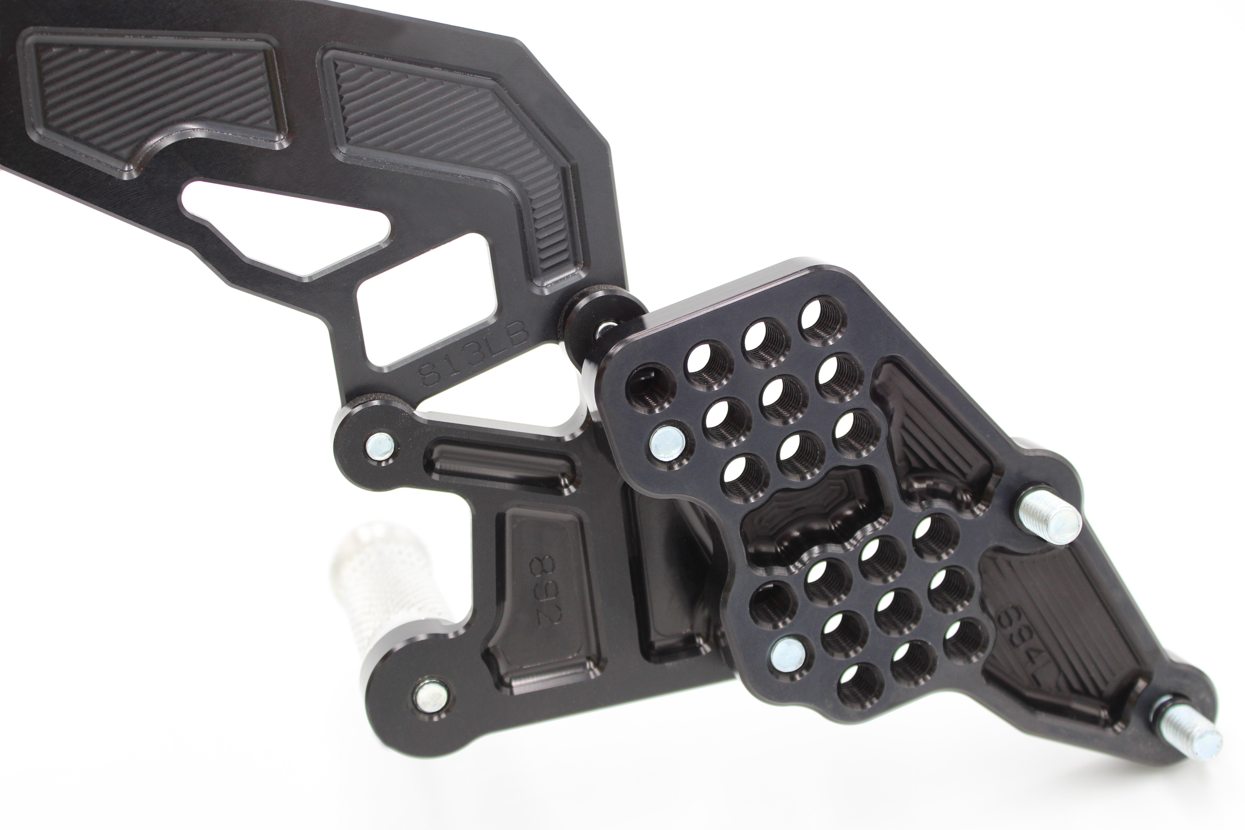 Oproti sériovým stupačkám přináší RACE CONCEPT pevnější zázemí pro nohy, jistější oporu při tvrdém brzdění a přesnější kontakt s motorkou ve chvíli, kdy je potřeba pracovat rychle a čistě. Reversní řazení přirozeně zapadá do sportovní logiky tohoto setu a pomáhá udržet větší jistotu při řazení v zatáčkách nebo při agresivnějším tempu. Díky ložiskovému uložení pák je ovládání hladké, přesné a velmi čitelné.
